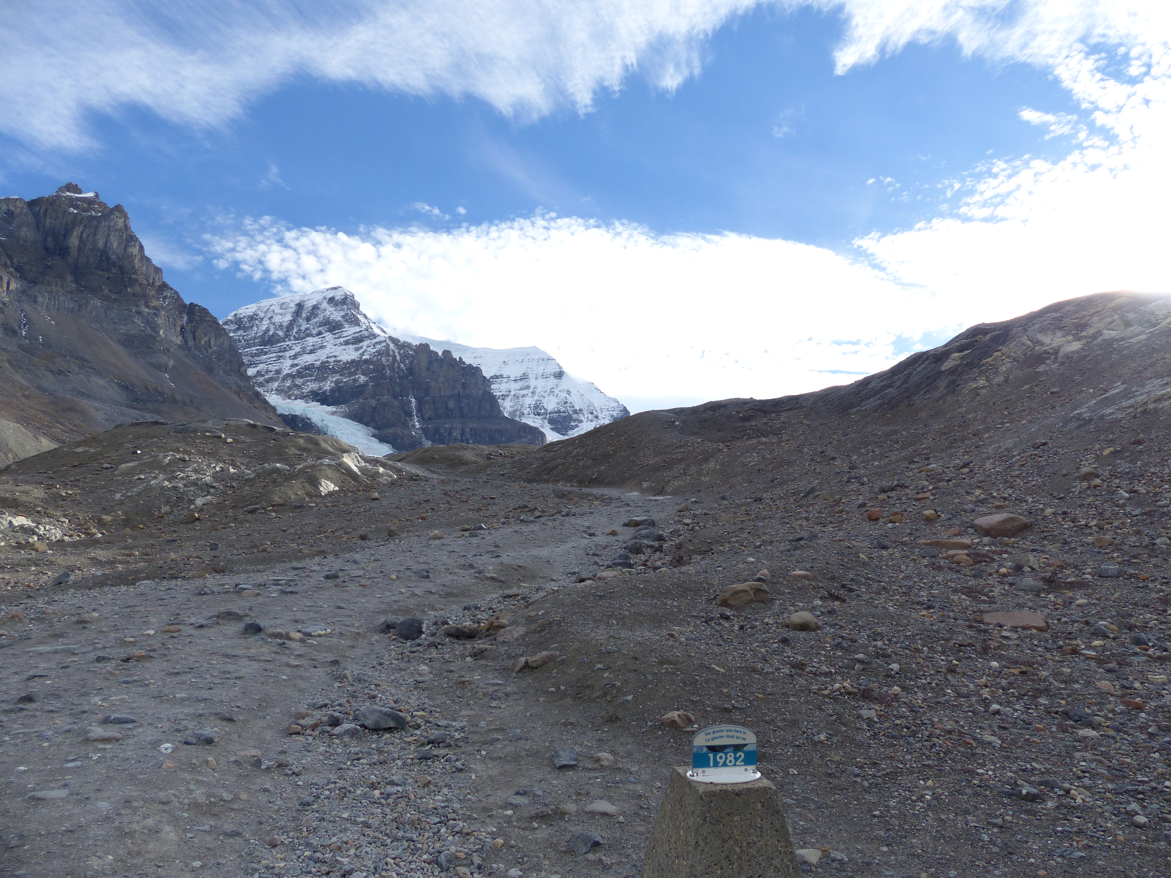 The third option was to walk up to the ‘toe’ of the Athabasca Glacier. On the drive and walk up to the glacier, you pass markers that show how far the glacier has retreated since the 1840s. As the glacier retreats, it leaves behind a pile of debris, and so even as recently as the 1982 marker, you can’t actually see the glacier. The rate at which the glacier has melted and retreated is scary.