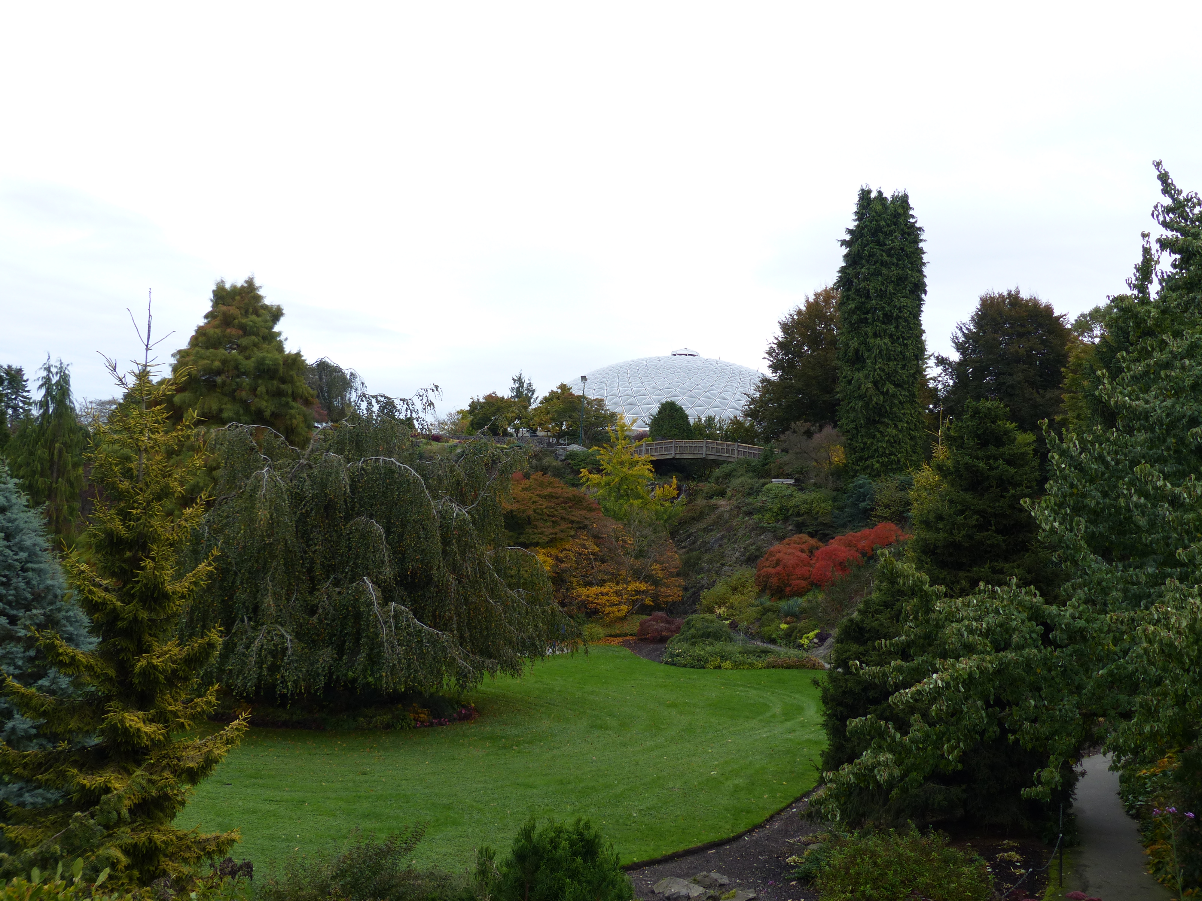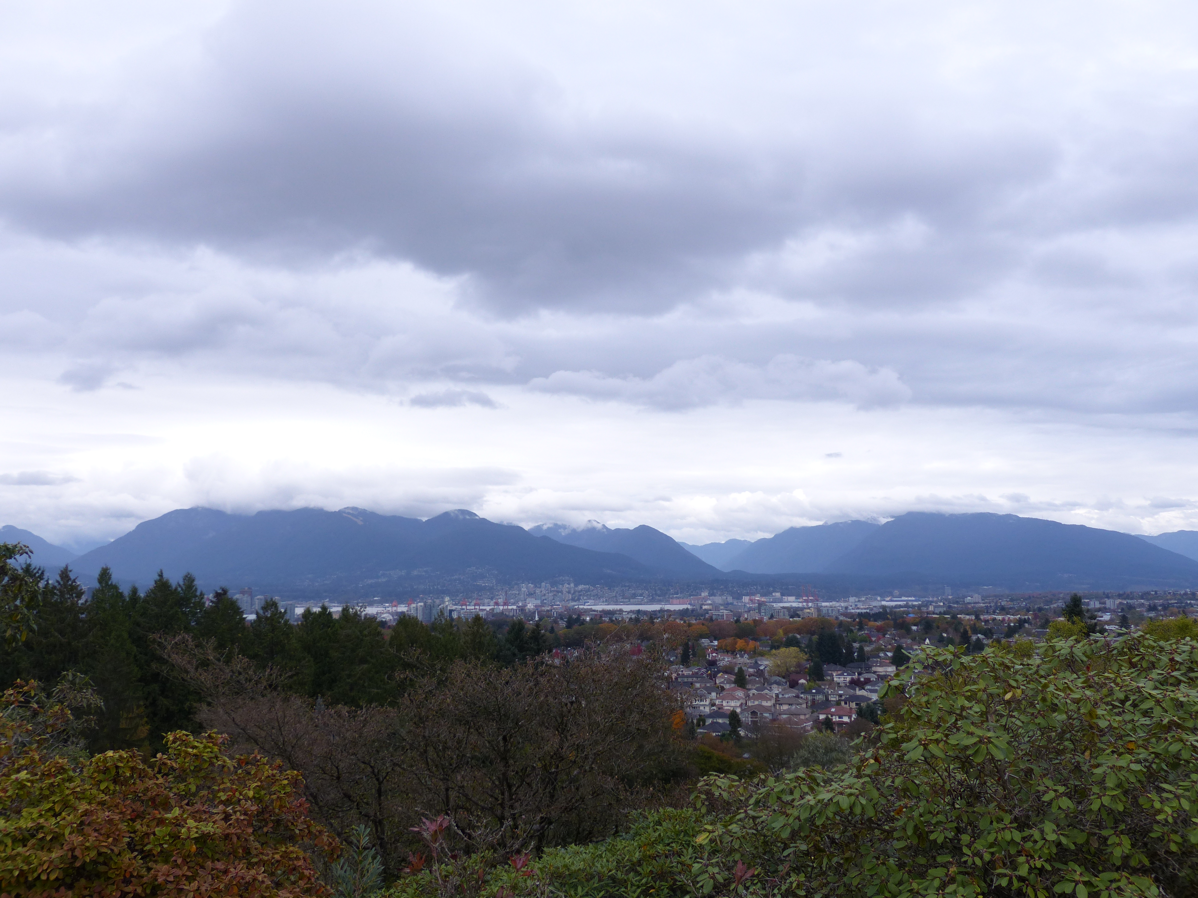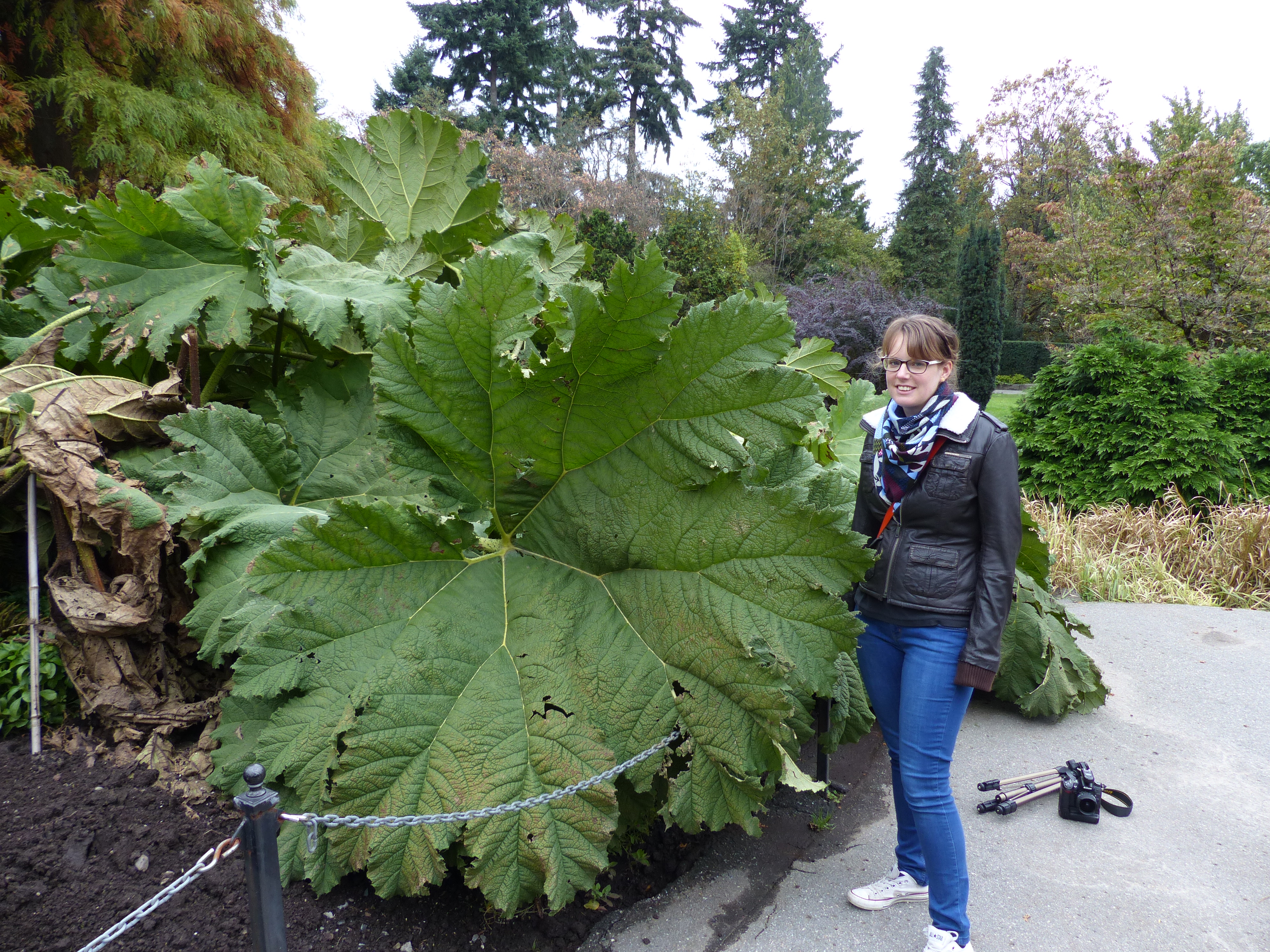 On one of the days when it wasn’t raining we headed over to Queen Elizabeth Park in the south of the city. The park is meant to offer ‘tremendous mountain views’ and views of Vancouver, so despite it being a grey day we were hopeful. However it transpired that someone put some trees in the way of downtown so unfortunately we couldn’t see much but we did see some mountains! The park does also offer some mini waterfalls, gardens and a giant rhubarb plant so we enjoyed having a short wander around.