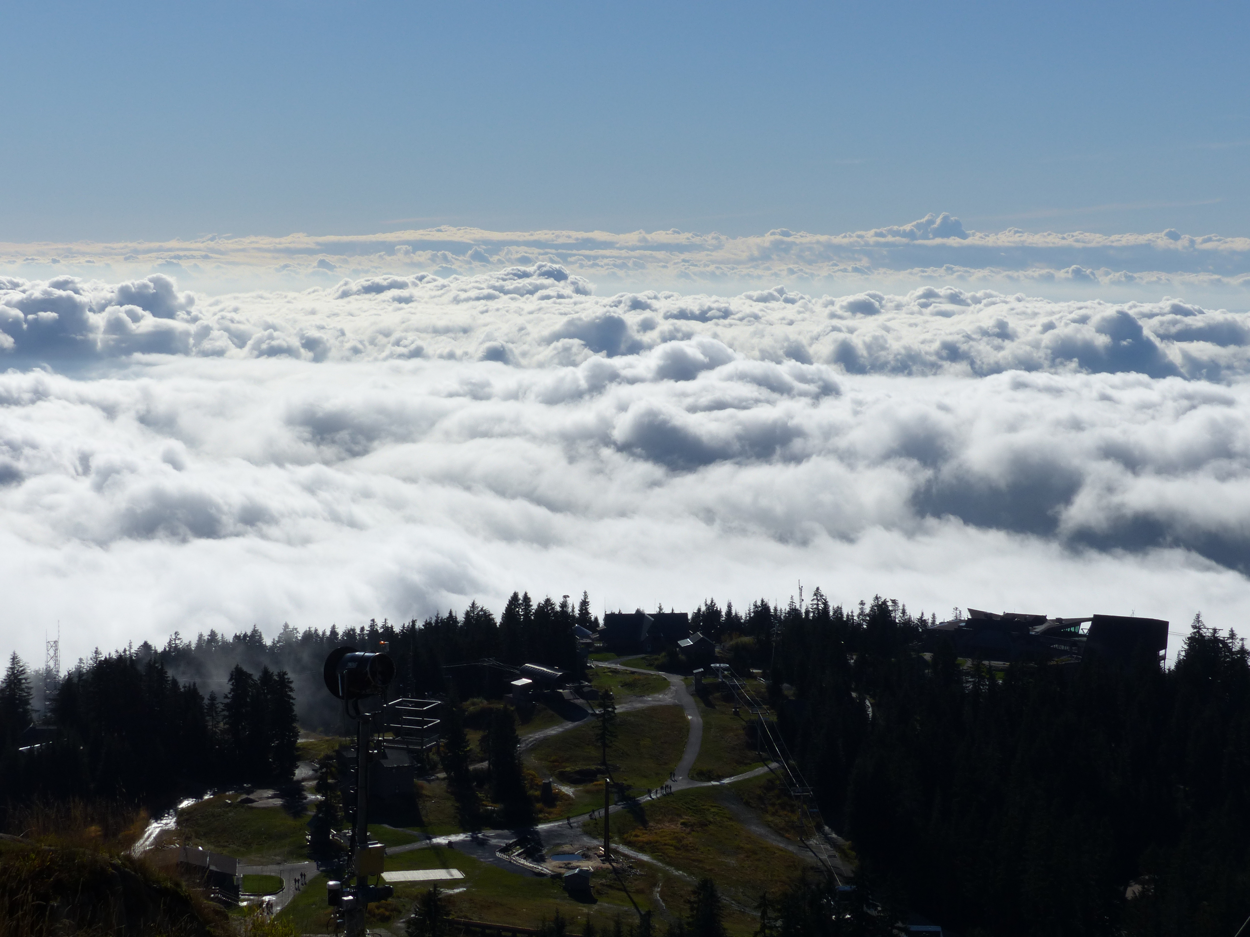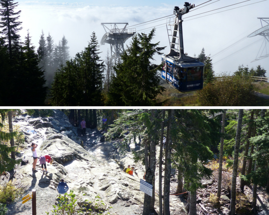 There are two ways up the mountain – the easy way and the hard way. The hard way involves taking on the famous ‘Grouse Grind’, a 2.9km trail up the face of the mountain. Now 2.9km is not very far, but with an elevation gain of 853m it is said to be a very tough hike and Stewart decided that I wasn’t fit enough to take it on after Tunnel Mountain in Banff. I am however determined to do it if we end up back in Vancouver to prove him wrong!