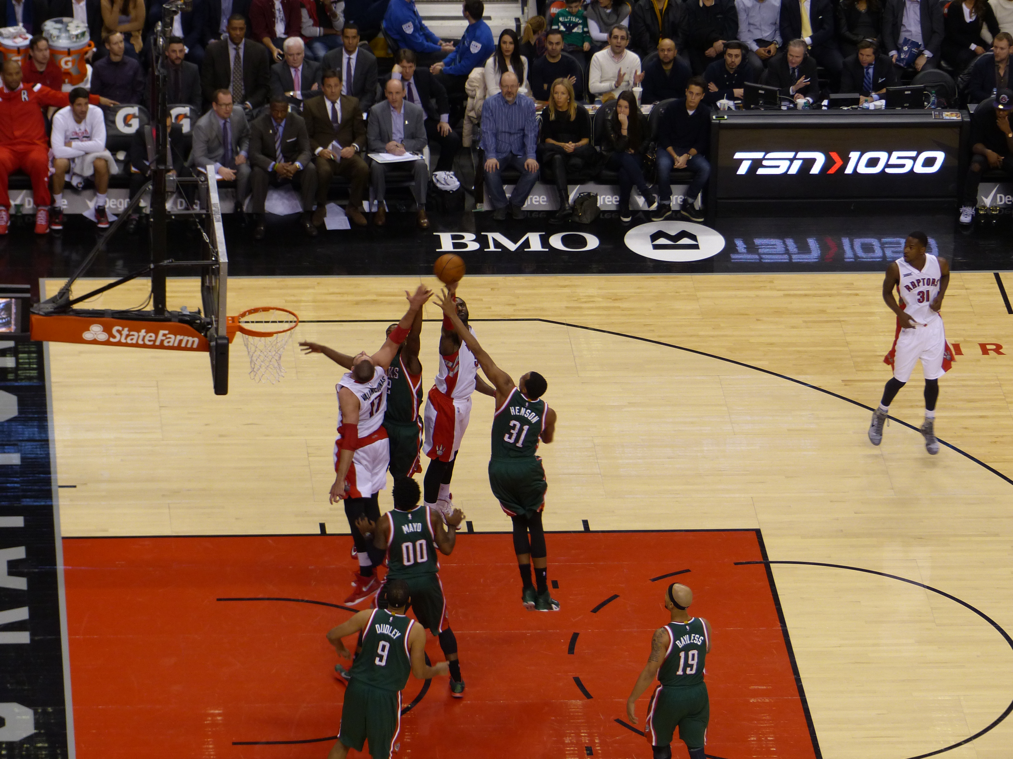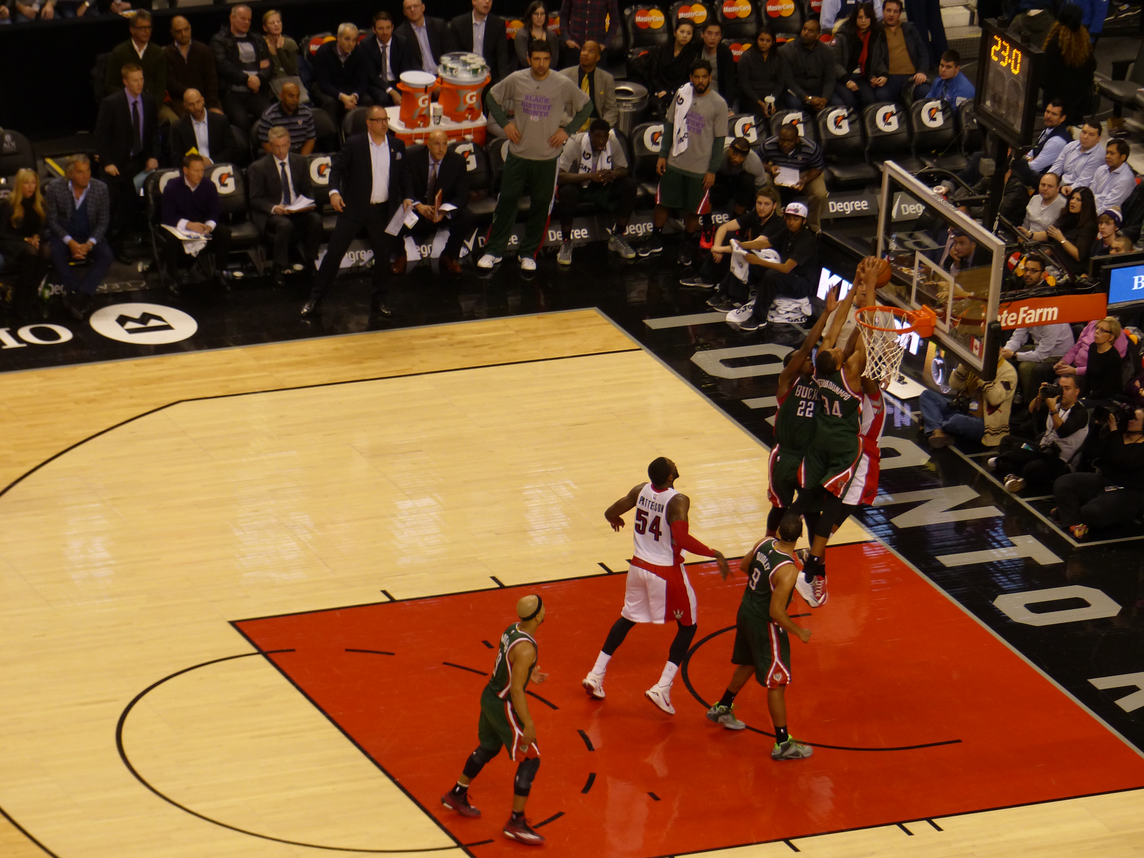 Despite ending up only two rows from the back of the arena, our view of the court was excellent (until the idiot in front of us started jumping around with her stupid oversized hat). The game started and Milwaukee soon raced into a lead, which was something of a surprise given that they are distinctly average and to date Toronto has been one of the best teams in the NBA this season.