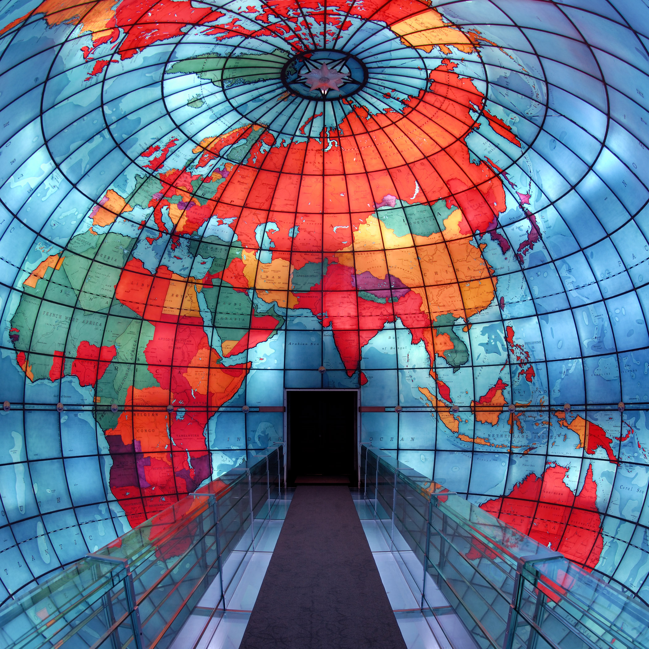 Located in the Mary Baker Eddy Library, the globe is 3 storeys tall. Of course, if it was like a normal globe, and you stood inside it looking out, everything would face the wrong way! So just imagine that the view from the inside of the Mapparium is of a concave globe and not a convex one – it’s like someone has peeled the skin off the Earth, turned it inside out, and you’re standing in the centre of it.