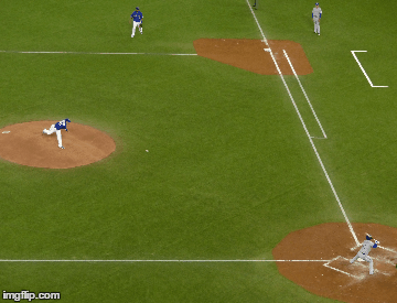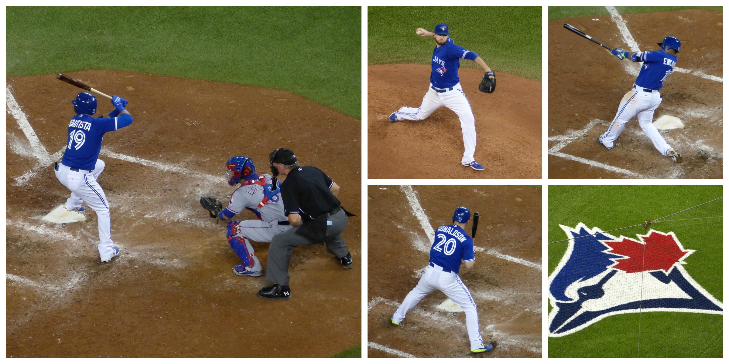 After a slow start, Josh Donaldson hit a massive home run for the Blue Jays! Next innings, and another two Blue Jays players, Jose Reyes and Devon Travis, brought in runs, meaning that the score was now 3-0. Game over? Well not quite, as the Rangers hit back immediately, picking up a run in each of their next two innings.