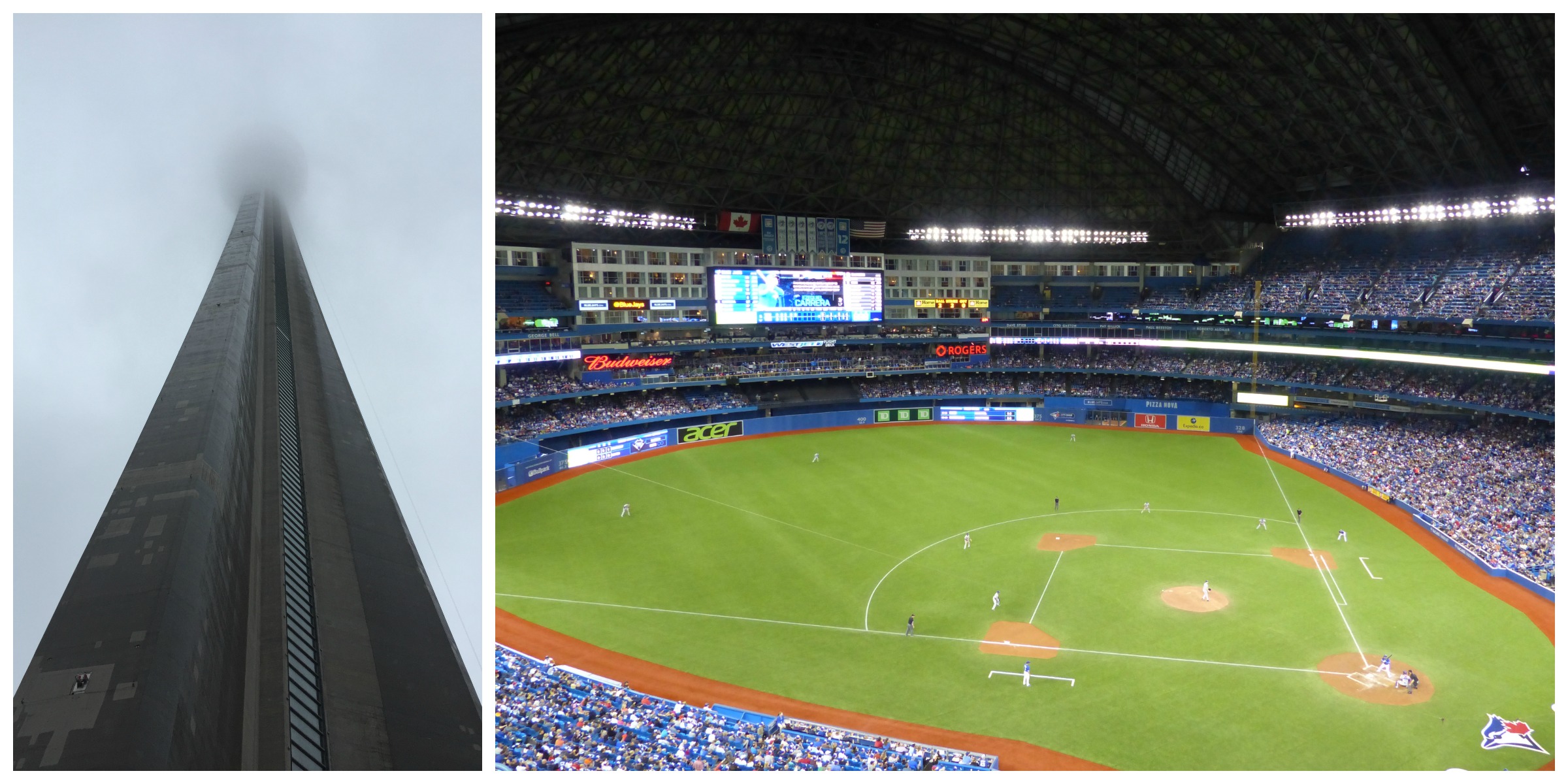 Hats in hand (or should that be ‘on head’?), we headed up into the heavens to our seats. Despite being on the top tier, our view was still remarkably good. However, whilst back home, England was experiencing some great weather last weekend, Toronto was experiencing weather that England should have during the summer – rain, cloud, low temperatures, wind and general greyness. The good news is that the Rogers Centre has a roof, so no case of rain stopping play here. The bad news is that we had picked seats specifically that should have given us a view of the match as well as through the open roof of the CN Tower looming over us next door (always thinking of the photo opportunity you see). Better luck next time I guess.